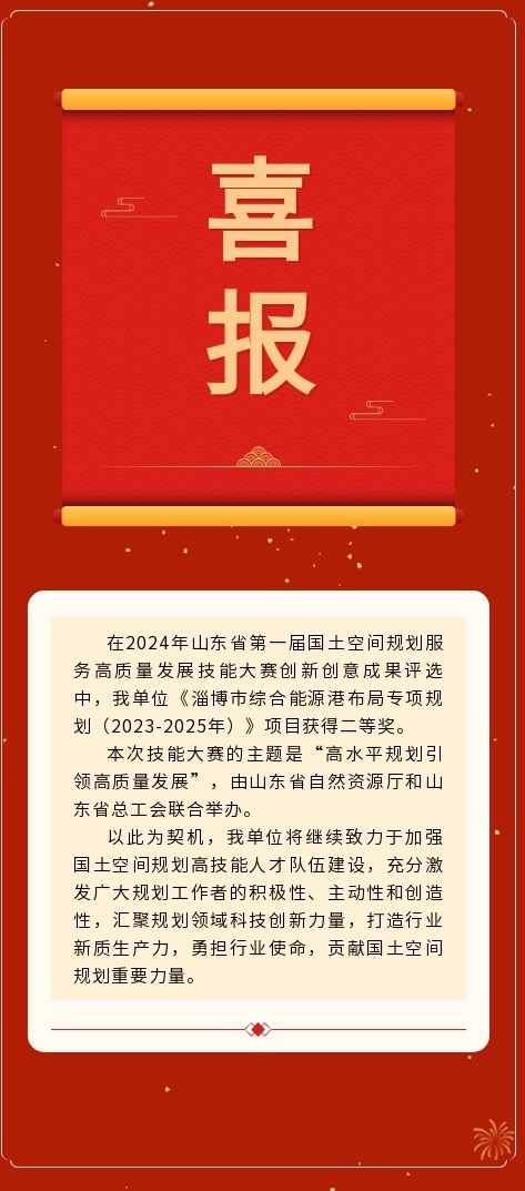 我单位项目喜获山东省第一届国土空间规划服务高质量发展技能大赛二等奖